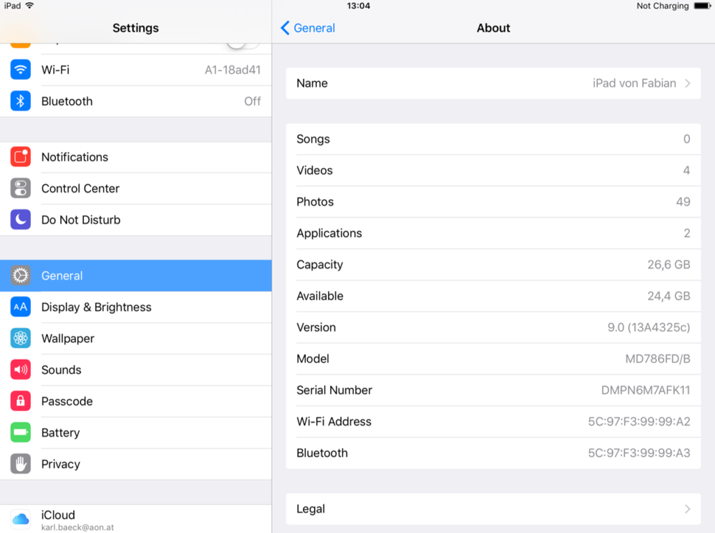 Here you can change the name of your iPad. Other devices can see this name if they try to connect to you via Bluetooth.